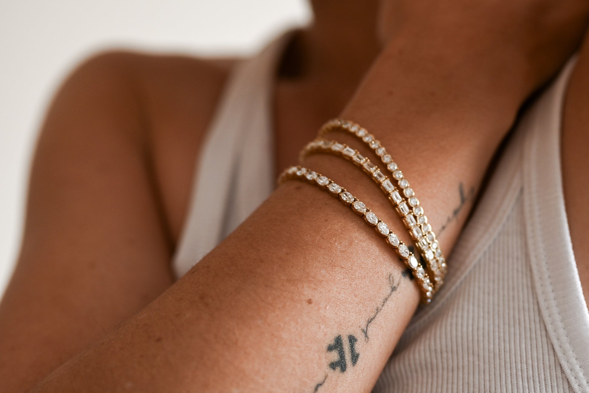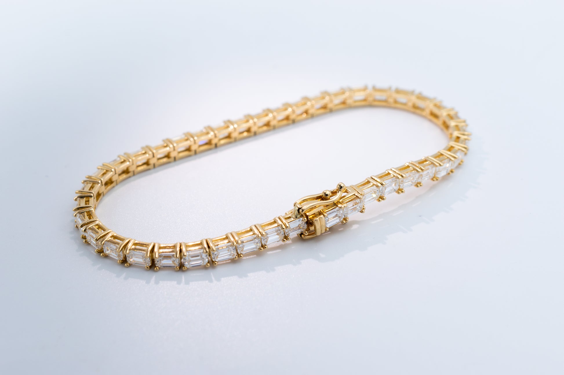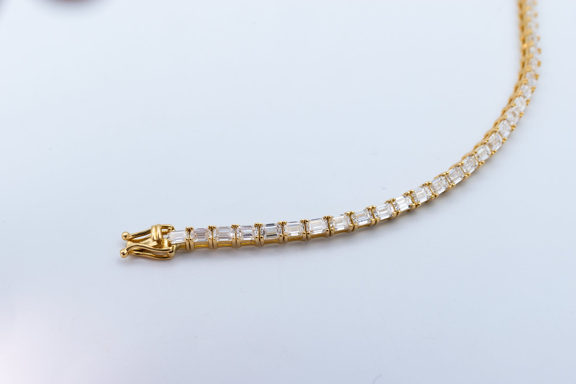 18K Yellow Gold East-West Emerald Cut Tennis Bracelet – 8.40ct