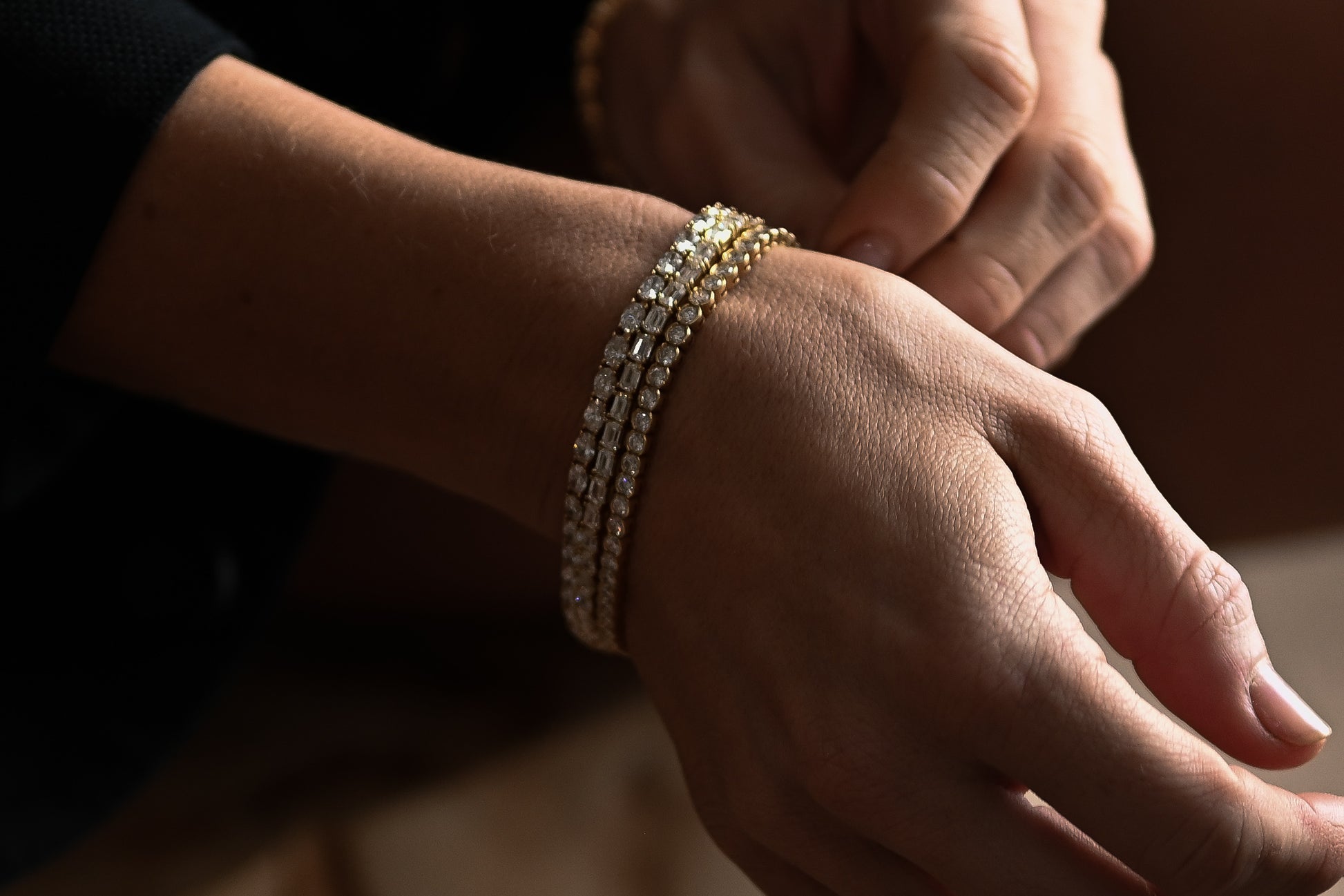 Bold and sophisticated, this 18K yellow gold tennis bracelet features a sleek East-West setting of emerald-cut lab-grown diamonds. With elongated proportions that catch the light from every angle, the 8.40ct of DE colour, VVS–VS clarity stones are elegantly arranged across an 18.0cm length. Perfect for stacking or making a statement on its own, this piece balances contemporary styling with timeless luxury.