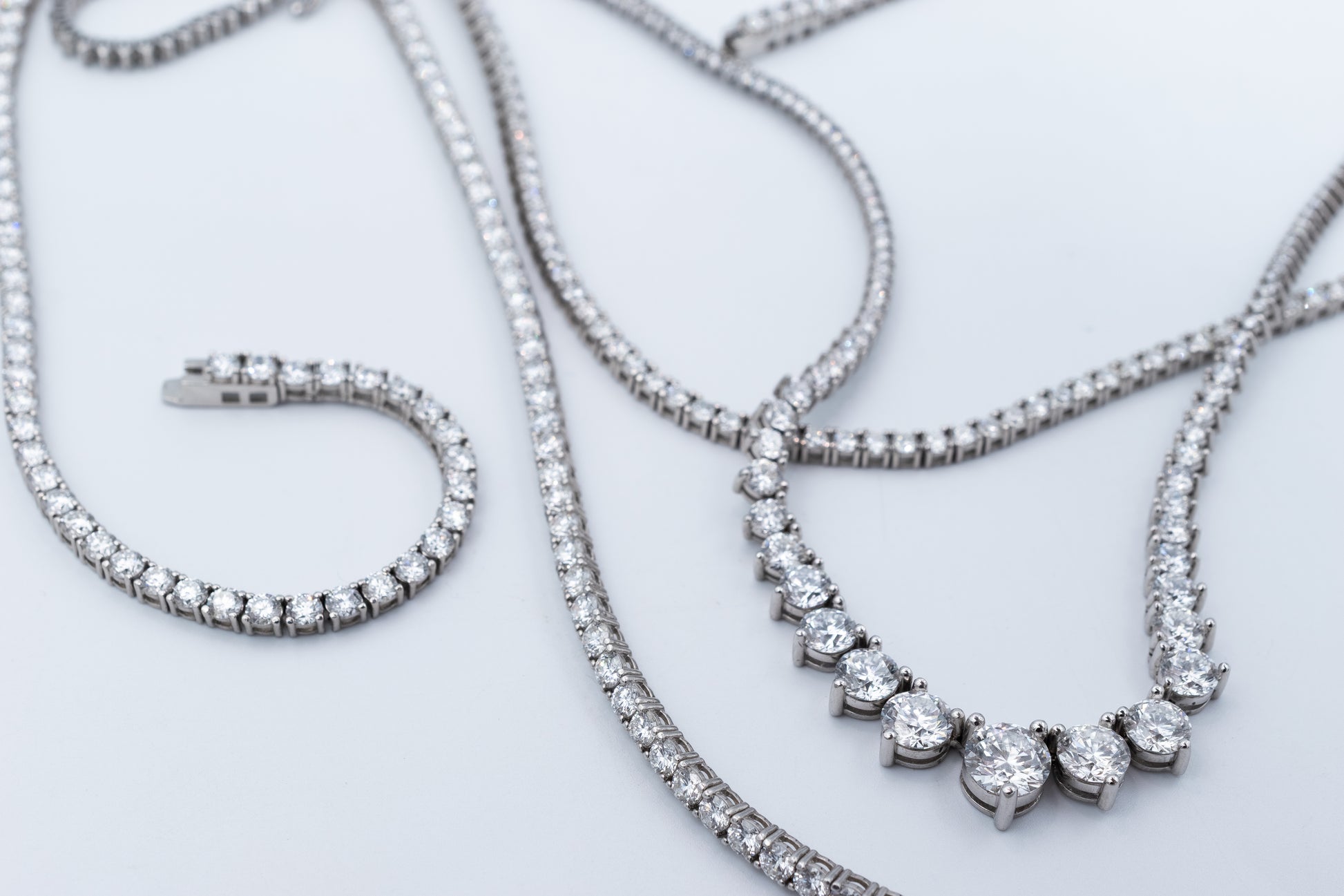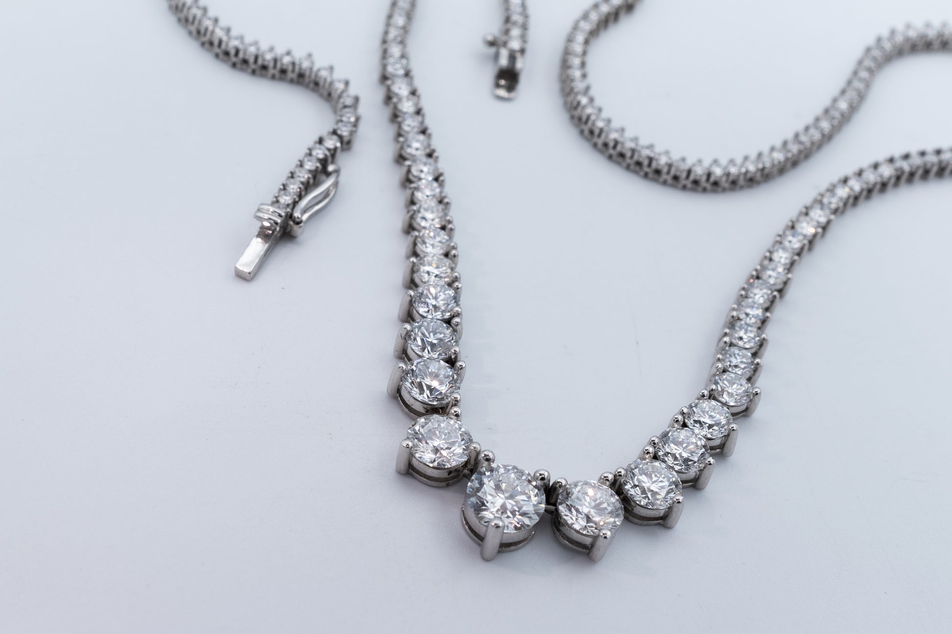 18K White Gold Graduated Diamond Tennis Necklace – 13.11ct