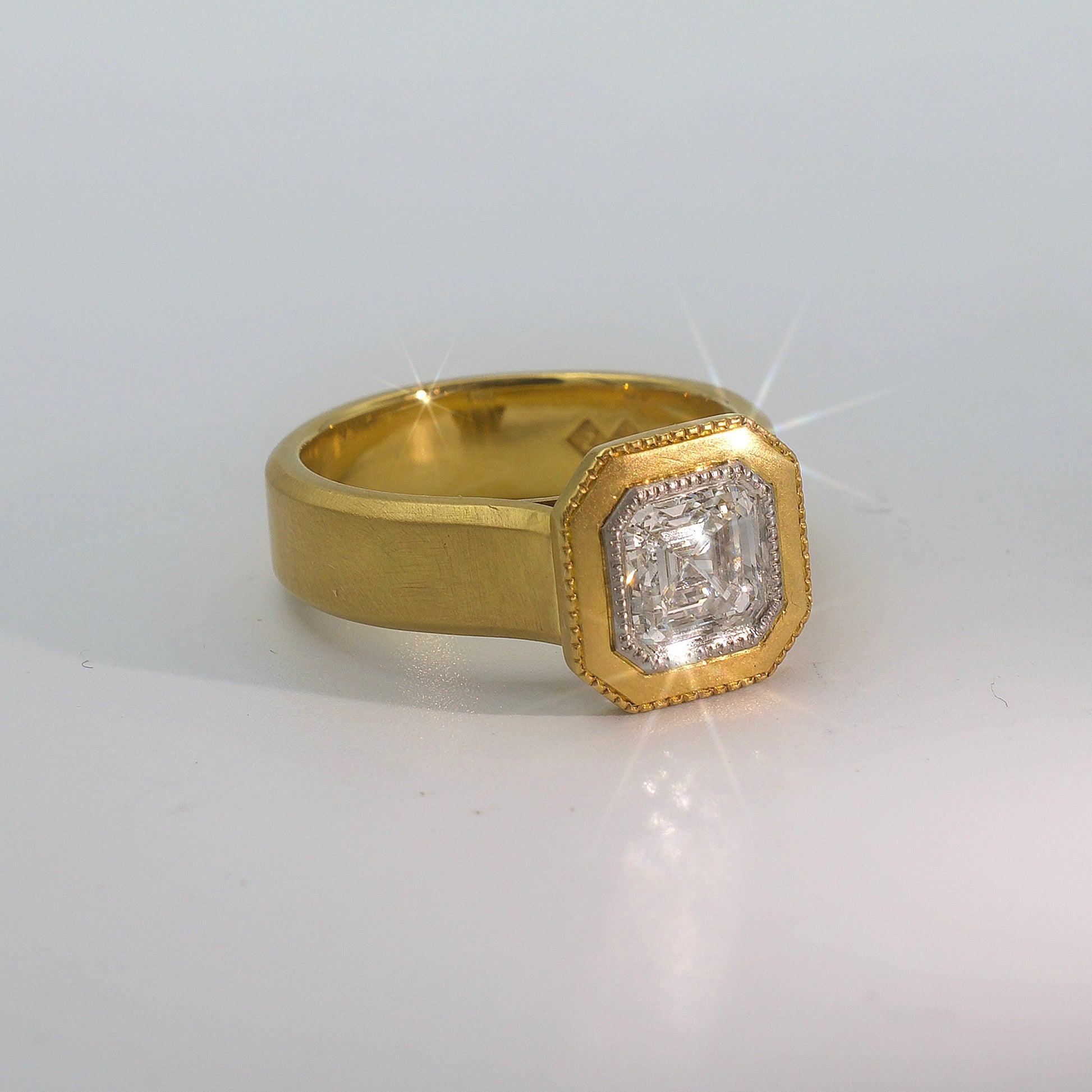 FEATURED DIAMONDS: 1.14ct lab grown assher cut center stone. 092ct lab grown princess cut diamond hidden stone. FEATURED DIAMONDS: 1.14ct lab grown assher cut center stone. 092ct lab grown princess cut diamond hidden stone.
